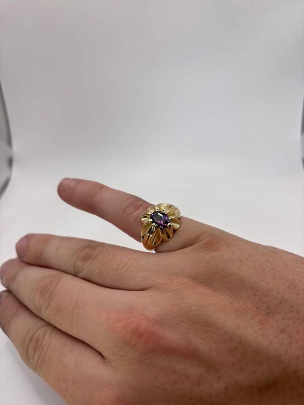 9ct Yellow Gold Purple Amethyst Stone Ring