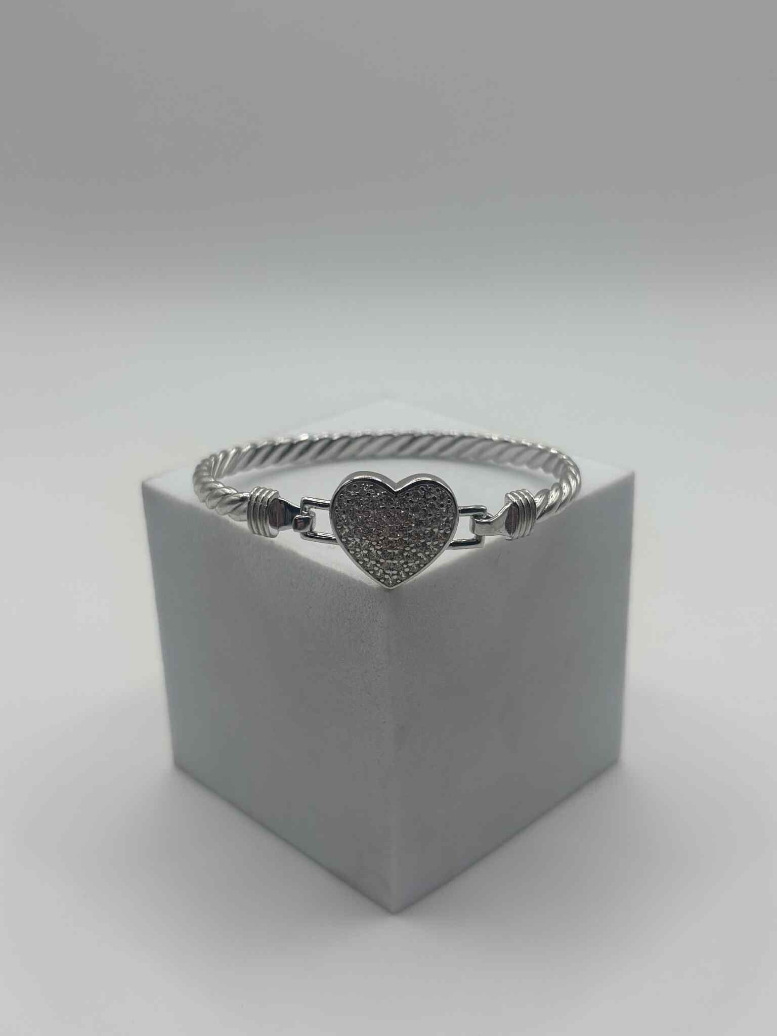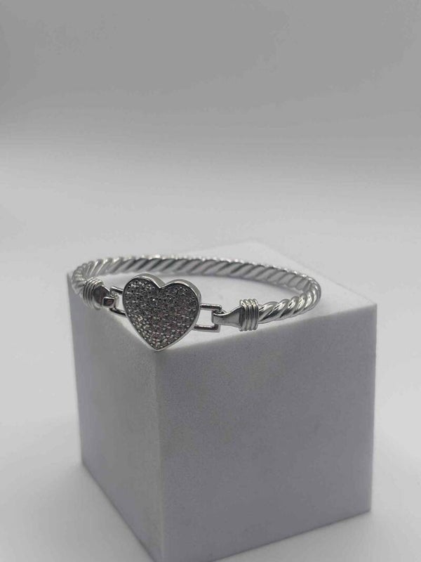 Heart CZ Bracelet - Toddler/Young Child 5.5", Silver