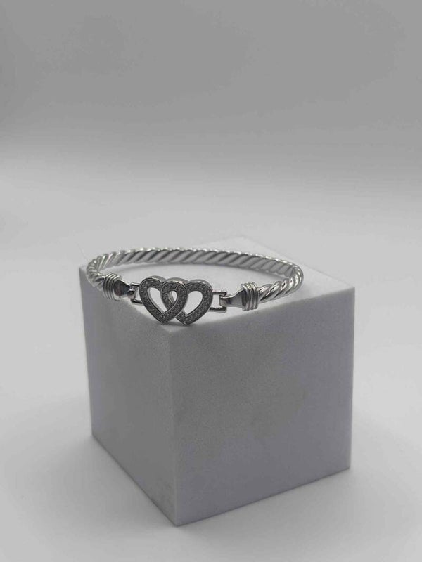 Double Heart CZ Bracelet - Toddler/Young Child 5.5", Silver