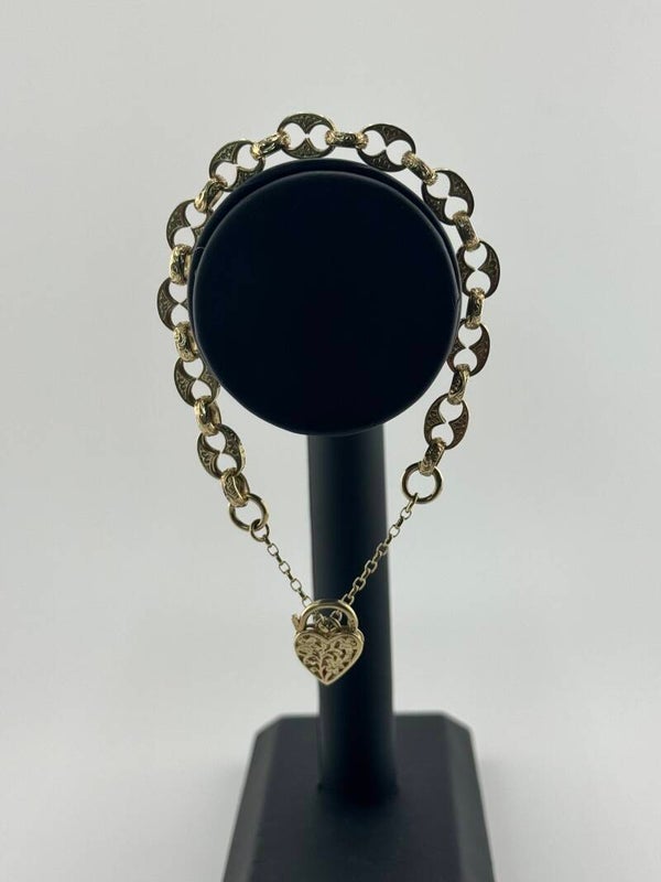 Button Link Bracelet With Heart Locket 7.5", 9ct Yellow Gold