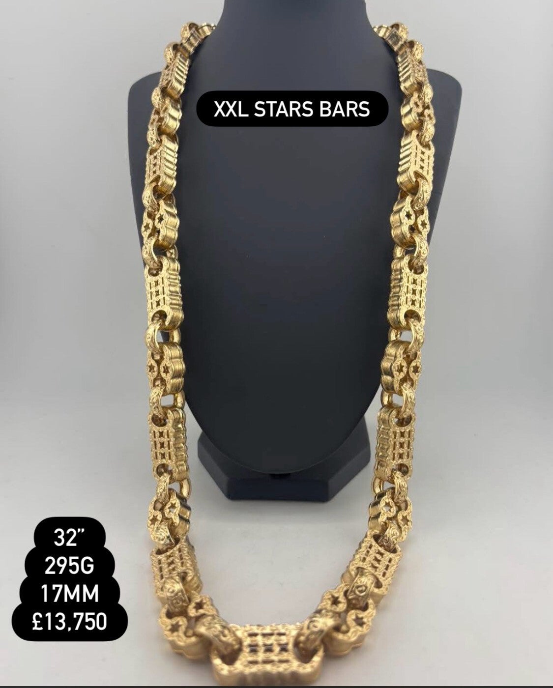 XXL Stars Bars Chain 32”, 9ct Gold (contact us direct to purchase)